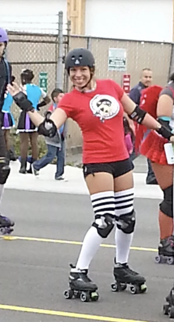 There was a point where I was 70 lbs overweight (according to military standards). But I didn’t like exercise, mainly because my knees were destroyed in the Army. Fortunately, I got lucky and had a good friend invite me to go skate with her. I laughed and said no way could I do that but after her giving me a push or two I gave it a try. I fell…a lot. But what I noticed was that I had a great time!!! I had a great time falling down!!!! Just kidding, it was the people, and we laughed a ton but most importantly, I didn’t even notice that I was exercising!!!